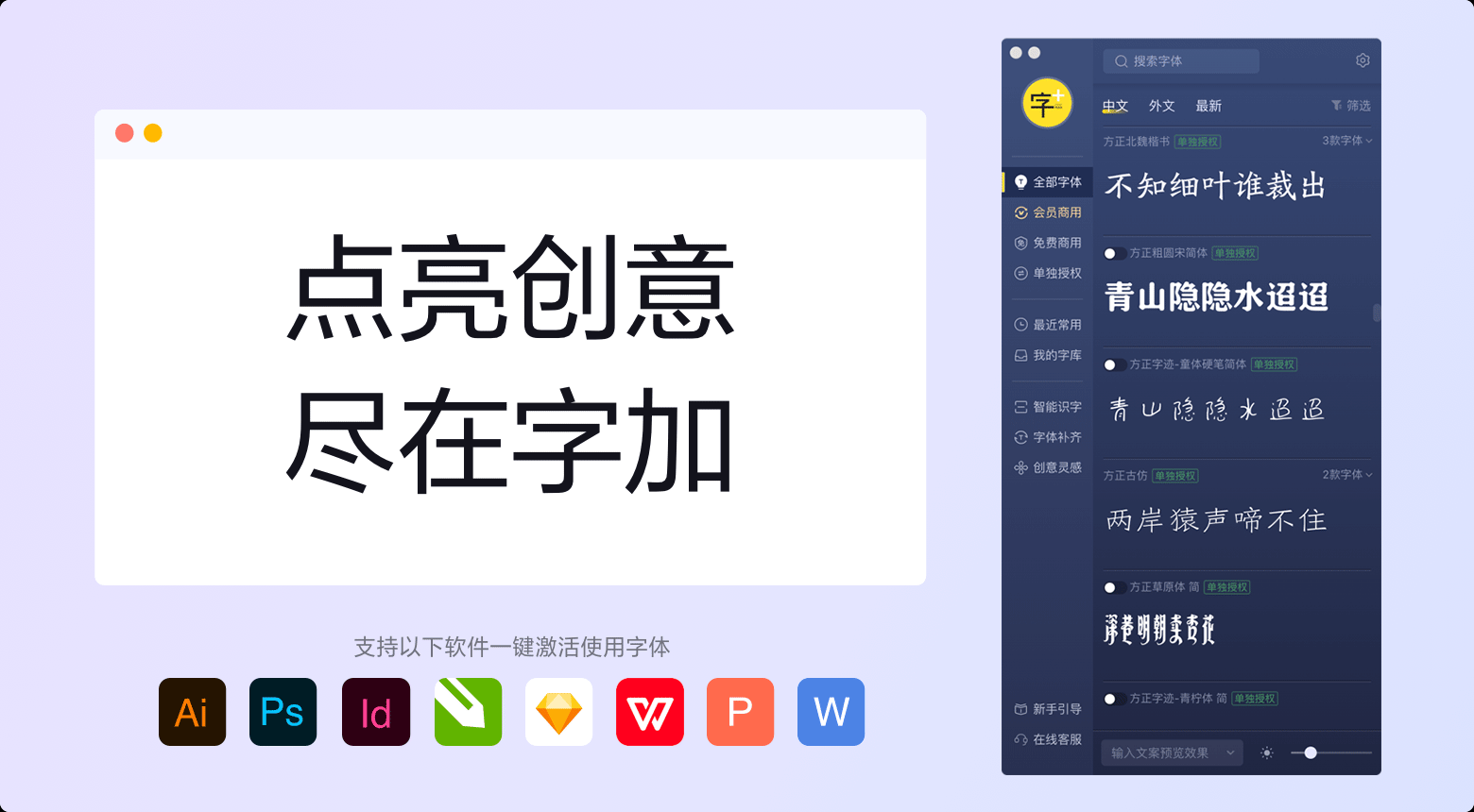 支持以下软件一键切换字体,简化使用字体时繁琐的安装流程